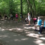 BF photoBuggyfit classes are an hour long. Classes start with a moderate warm up walk, moving into a power walk or run to raise our heart rates. This is when we start to burn fat! Each class includes group exercises specifically selected to strengthen and tone particular muscle groups, and enable us to cope with the demands of motherhood. We finish off with a cool down and stretch.